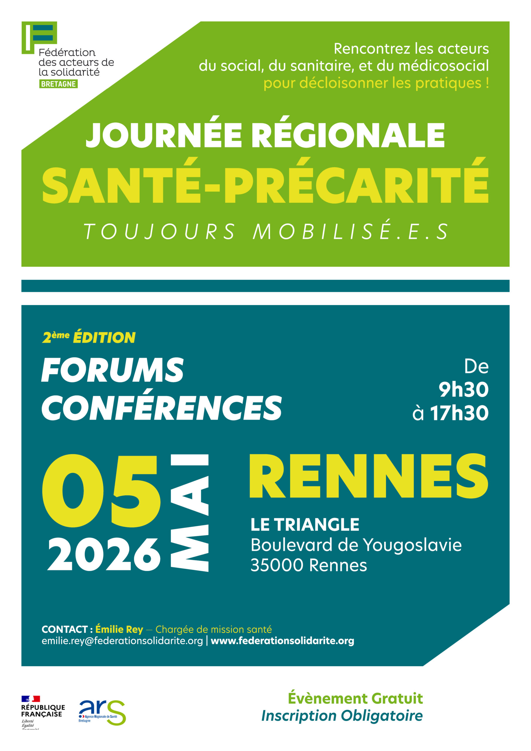 La Fédération des acteurs de la solidarité Bretagne (FAS Bretagne) organise le 5 mai 2026 à Rennes une journée dédiée aux enjeux de la santé et de la précarité, une occasion unique pour les professionnels du secteur de se rencontrer, d’échanger et de trouver de nouvelles pistes d’action.