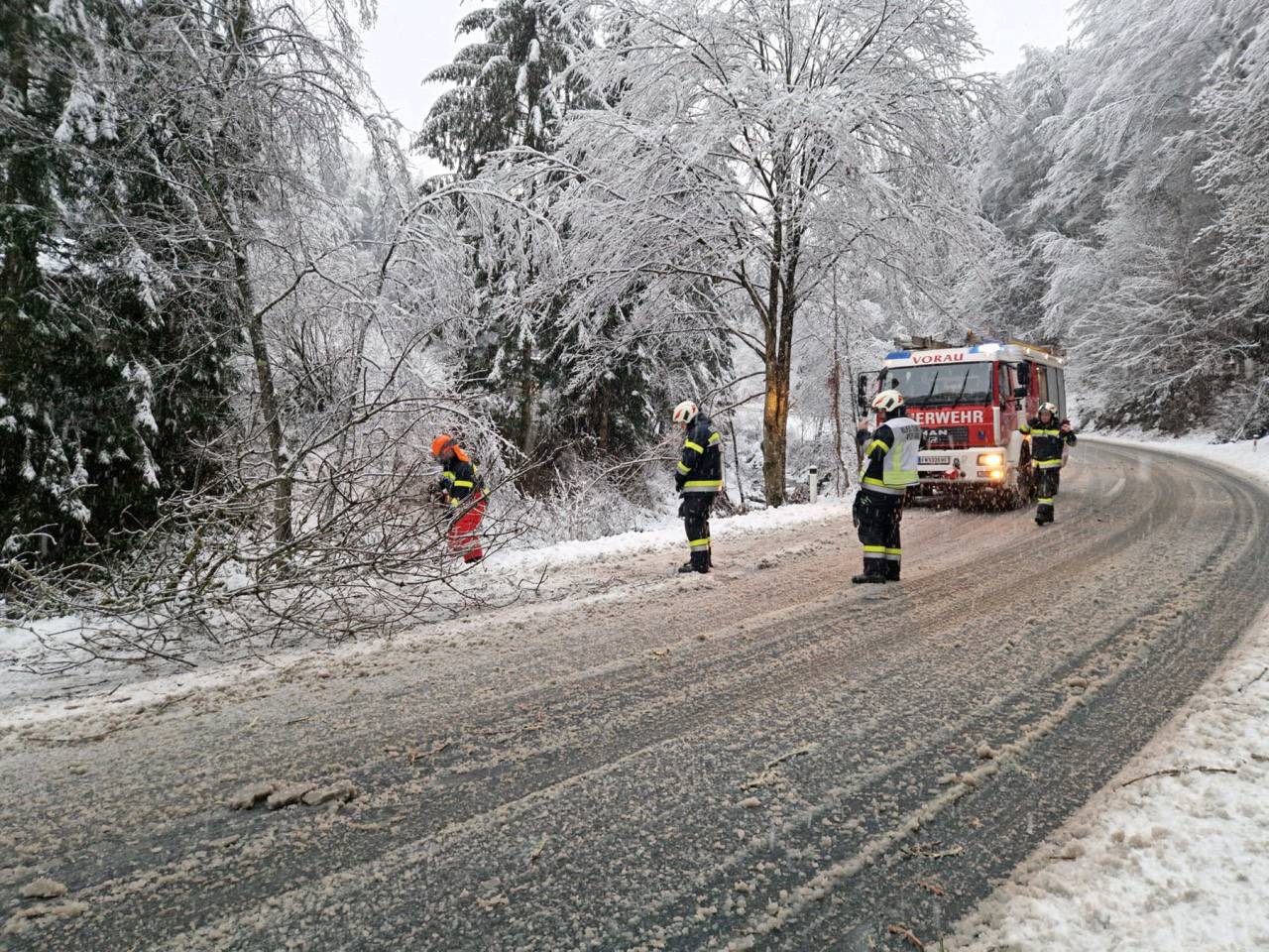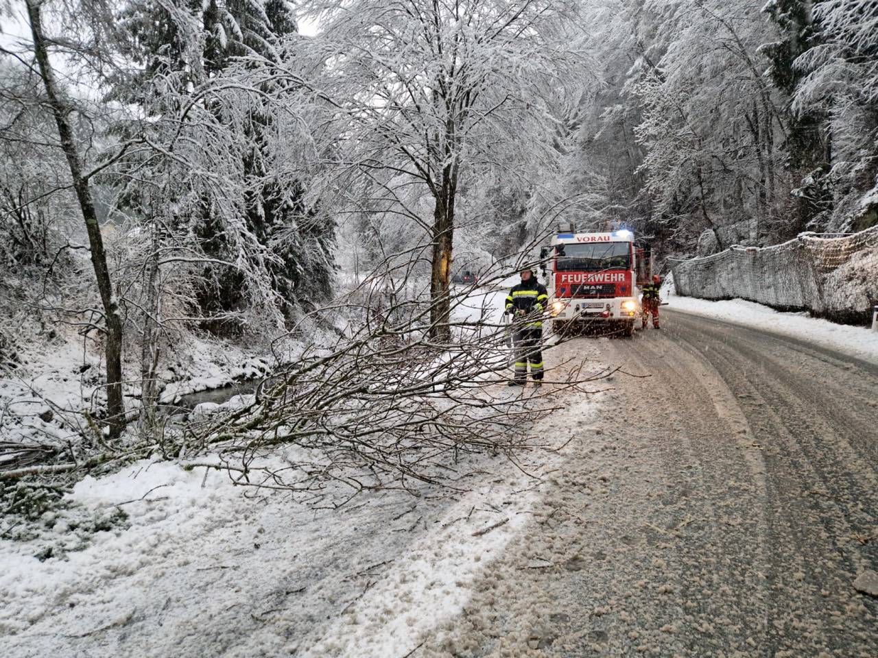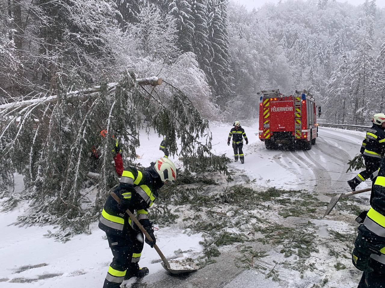 Les pompiers ont également été appelés à Schachen pour une opération de remorquage de véhicules dans le secteur des machines agricoles de Gaugl. Après une brève accalmie en début d’après-midi, de nouvelles chutes de neige ont relancé les opérations de déboisement à partir de 17h00, notamment sur la L408, entre Vornholz et Reierbach, où la circulation a été rétablie vers 22h28.