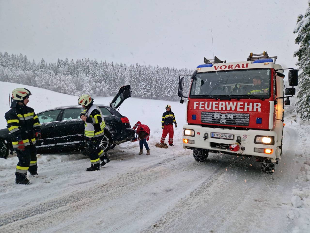 - Les pompiers ont également aidé à remettre sur les roues plusieurs véhicules qui avaient quitté la chaussée dans le secteur de Riegersberg.
