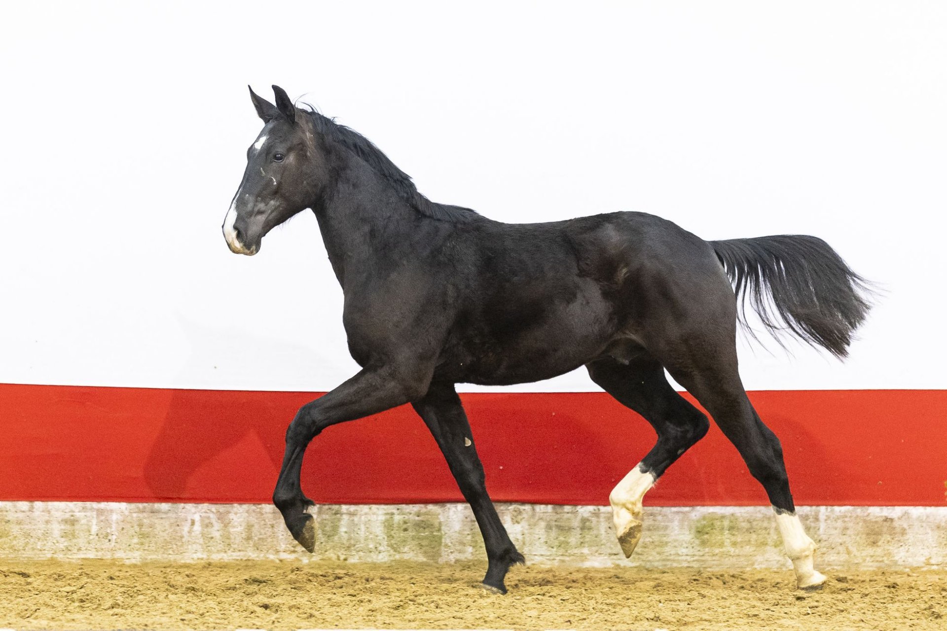Un jeune étalon belge de race Warmblood, âgé de deux ans et doté d’un potentiel exceptionnel pour le saut d’obstacles, est proposé à la vente aux enchères à Waddinxveen, aux Pays-Bas. L’animal, nommé Car JK, se distingue par sa technique de saut arrière remarquable et son aptitude à progresser.