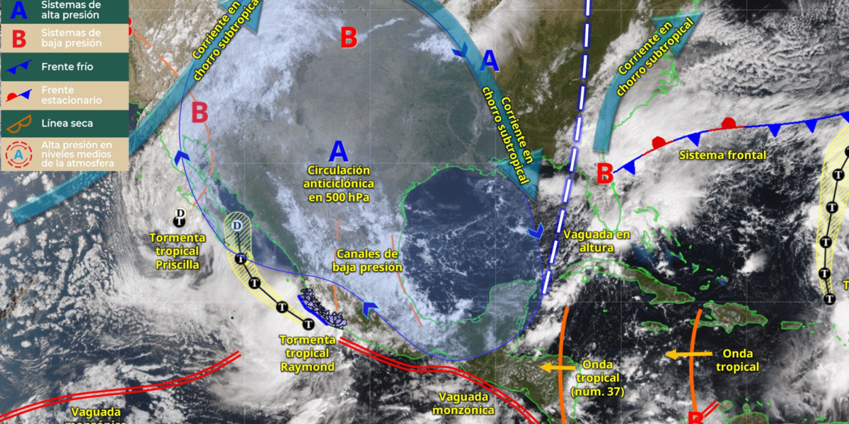 La situation météorologique devrait s’étendre sur tout le week-end. Bien que Raymond puisse s’affaiblir dimanche, ses restes et son interaction avec un front froid continueront d’affecter le nord et le nord-ouest du pays. Dans le même temps, la 37ème onde tropicale maintiendra un régime de pluies sur le sud-est et la péninsule du Yucatán.