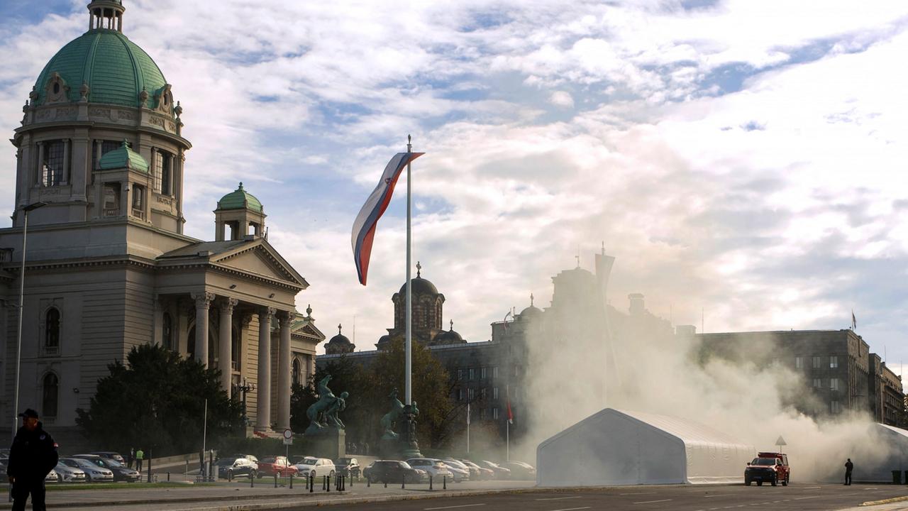 Un incident grave a éclaté mercredi devant le Parlement de Belgrade, la capitale serbe. Un homme a été grièvement blessé par balle près d’un camp de tentes installé par des partisans du président Aleksandar Vucic. Les autorités ont rapporté que des coups de feu ont été tirés, provoquant également un incendie dans la zone.