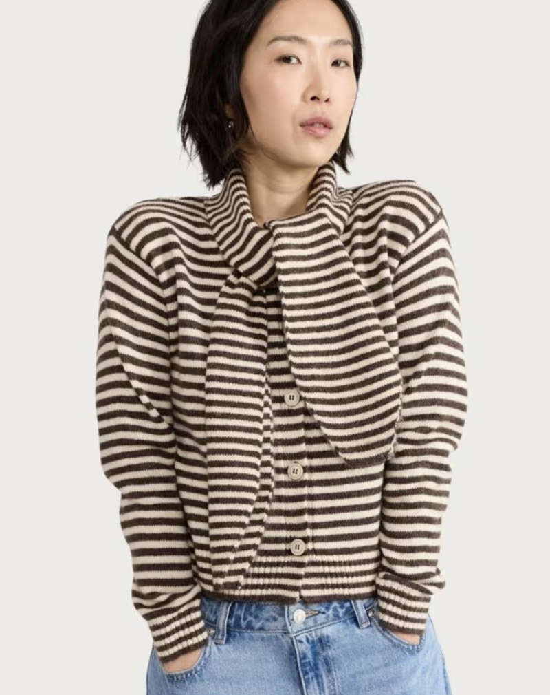 La popularité du cardigan a été amplifiée par une vidéo TikTok postée par une passionnée de mode, @freyaa_watkins. La vidéo met en valeur le détail de l’écharpe intégrée.