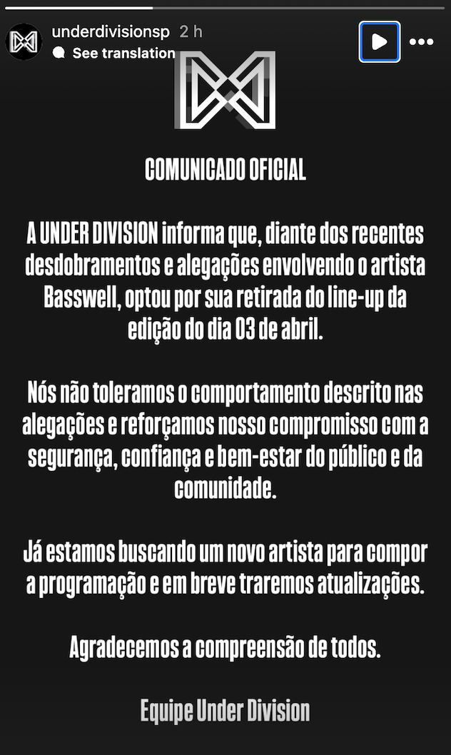 - Plusieurs festivals et clubs ont annulé les performances de Shlømo, Basswell, CARV et Odymel.