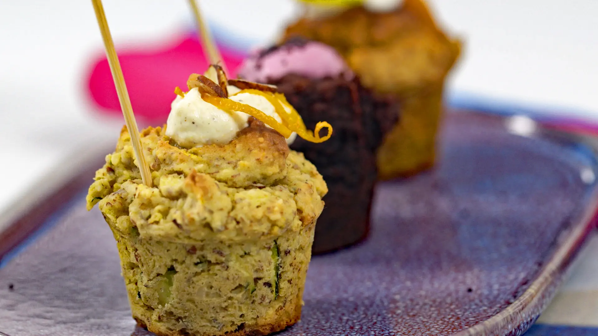Les garnitures, à base de crème fraîche, viennent compléter ces muffins originaux. Pour les muffins aux carottes, une crème à la vanille est recommandée, tandis que les muffins à la betterave se marient bien avec une crème au pavot. Enfin, les muffins aux courgettes sont sublimés par une crème à l’orange et au zeste d’agrumes.