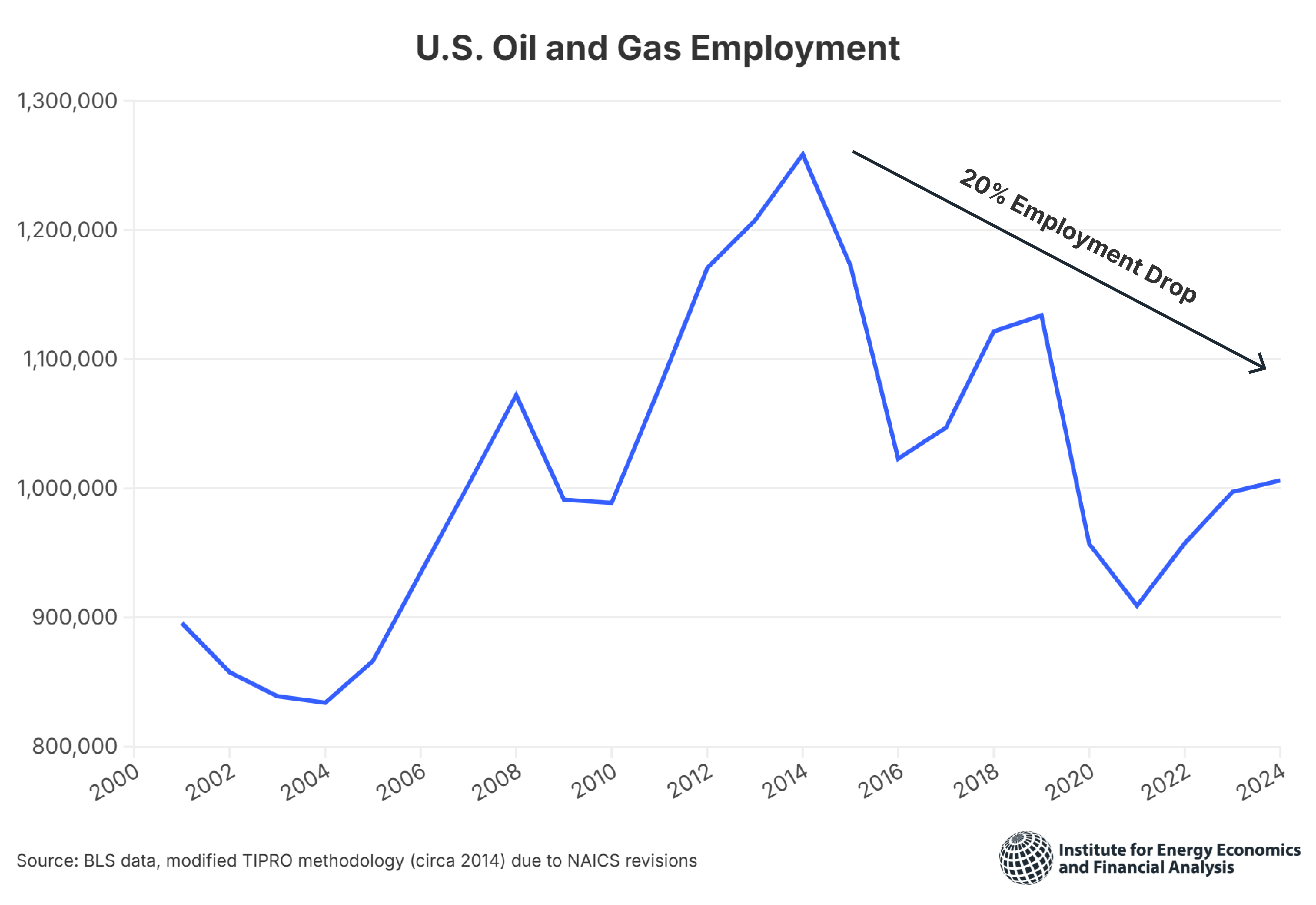 Le constat est sans appel selon Karr Ingham, président de la Texas Alliance of Energy Producers : « Depuis près de 10 ans maintenant, il est devenu de plus en plus évident que l’industrie a simplement besoin de moins d’employés pour produire des volumes toujours plus élevés de pétrole brut et de gaz naturel. » Cette observation est corroborée par les chiffres du Bureau of Labor Statistics des États-Unis. Entre 2014 et 2024, le secteur a supprimé 252 000 postes.