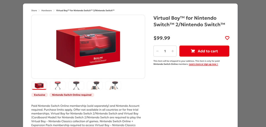 Le Virtual Boy rejoint ainsi une longue liste de produits matériels et d’objets de collection disponibles sur le My Nintendo Store qui ne sont pas proposés aux clients norvégiens. Alors que les habitants de pays comme le Liechtenstein et Andorre peuvent se procurer ces articles, la Norvège est une fois de plus laissée de côté. Nintendo n’a pour l’instant pas communiqué les raisons de cette exclusion.