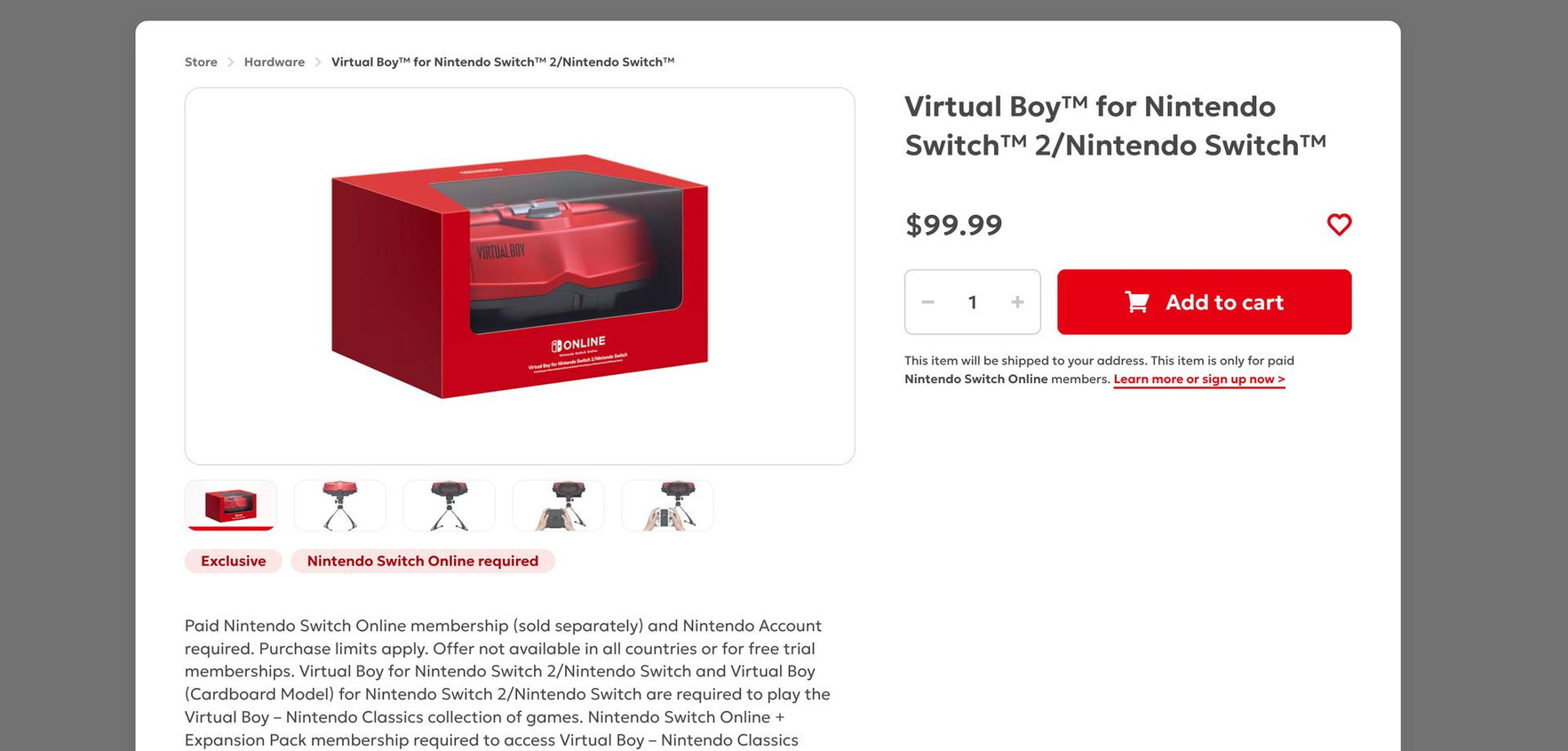 En plus de Virtual Boy, d’autres accessoires, tels que les manettes NES, SNES et GameCube, restent indisponibles à l’achat en Norvège via le My Nintendo Store.