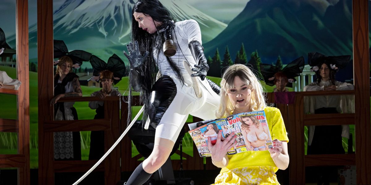 La Suisse n’est pas en reste dans cette exploration de l’amour des vaches, comme en témoigne le décor de scène, une image générée par intelligence artificielle mêlant le mont Fuji, le Cervin et des troupeaux en pâturage. Le chœur, composé de huit femmes zurichoises, vêtues de costumes traditionnels et de masques évoquant parfois des visages de manga, apporte une dimension chorale rappelant les chœurs de la tragédie grecque antique. Leurs chants, tantôt mélodiques, tantôt moins harmonieux, accompagnent les souffrances et les errances des personnages principaux.