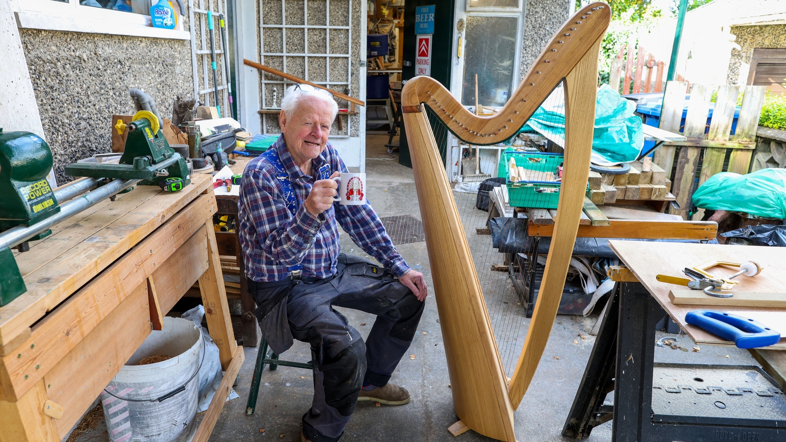« Il n’est jamais trop tard pour se lancer dans un nouveau passe-temps », affirme Noel Anderson, facteur de harpes dans le comté de Tyrone. À 89 ans, il fait partie des rares artisans à maîtriser la fabrication de cet instrument complexe. Cet ancien professeur de menuiserie et de métallurgie s’est découvert une passion pour ce métier de niche il y a seulement sept ans, construisant sa première harpe à l’âge vénérable de 82 ans. Installé à Strabane, il erklärt :